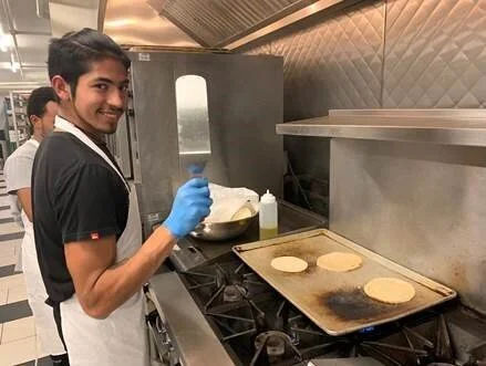 Putnam resident Ever learns how to make tortillas during a Putnam Place cooking class.