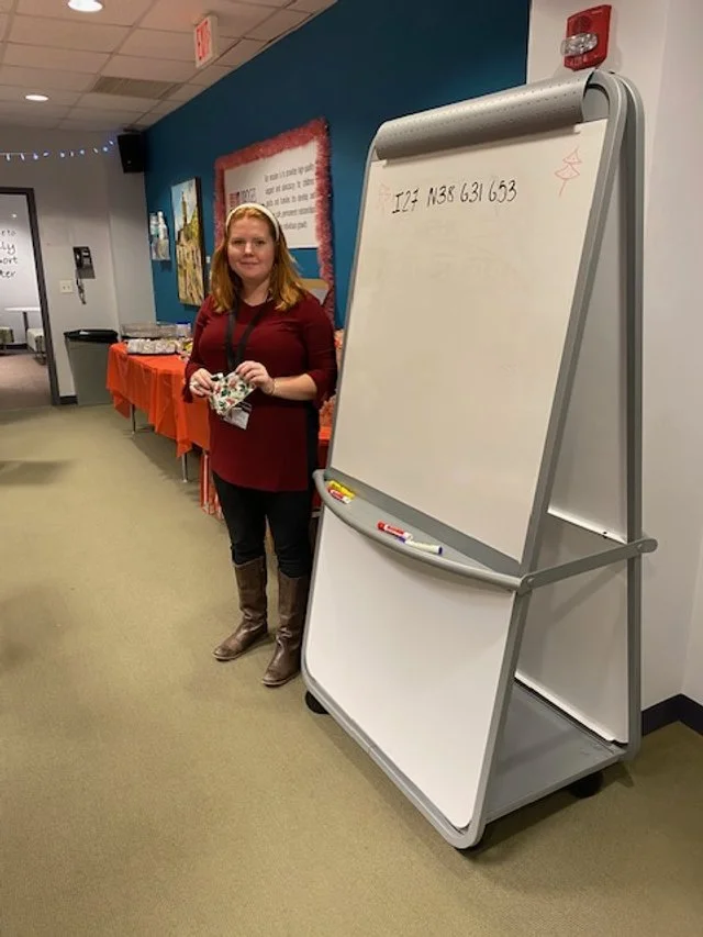 Adoption intern Shealah Bunnell with the Bingo board